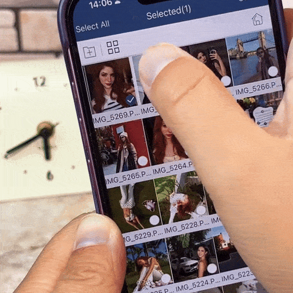 Válaszd ki a fotókat és videókat, majd kattints a „Megosztás” → „Mentés fájlokba” → Plugsy meghajtó opcióra. Ennyi. A fájlok pár másodperc alatt átkerülnek.