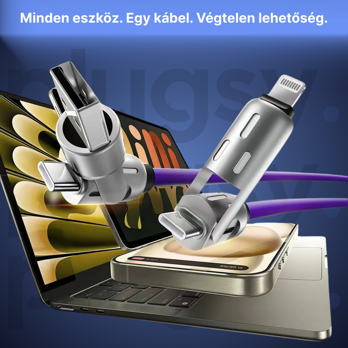 Akár iPhone-t, Android készüléket, laptopot vagy Mac-et használsz, a Plugsy™ 4 az 1-ben gyorstöltő kábel mindig készen áll.